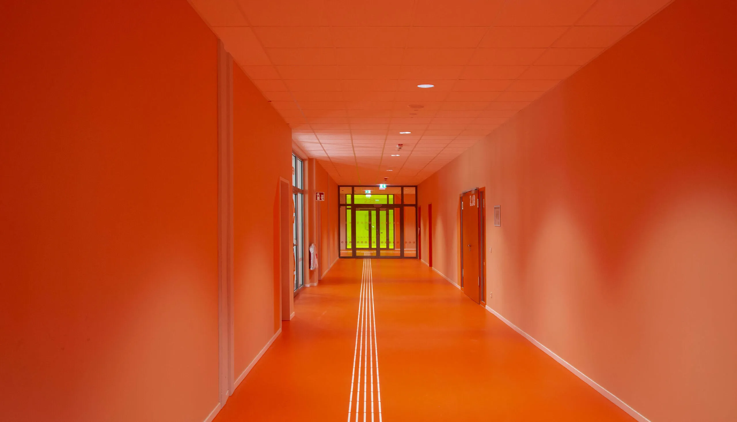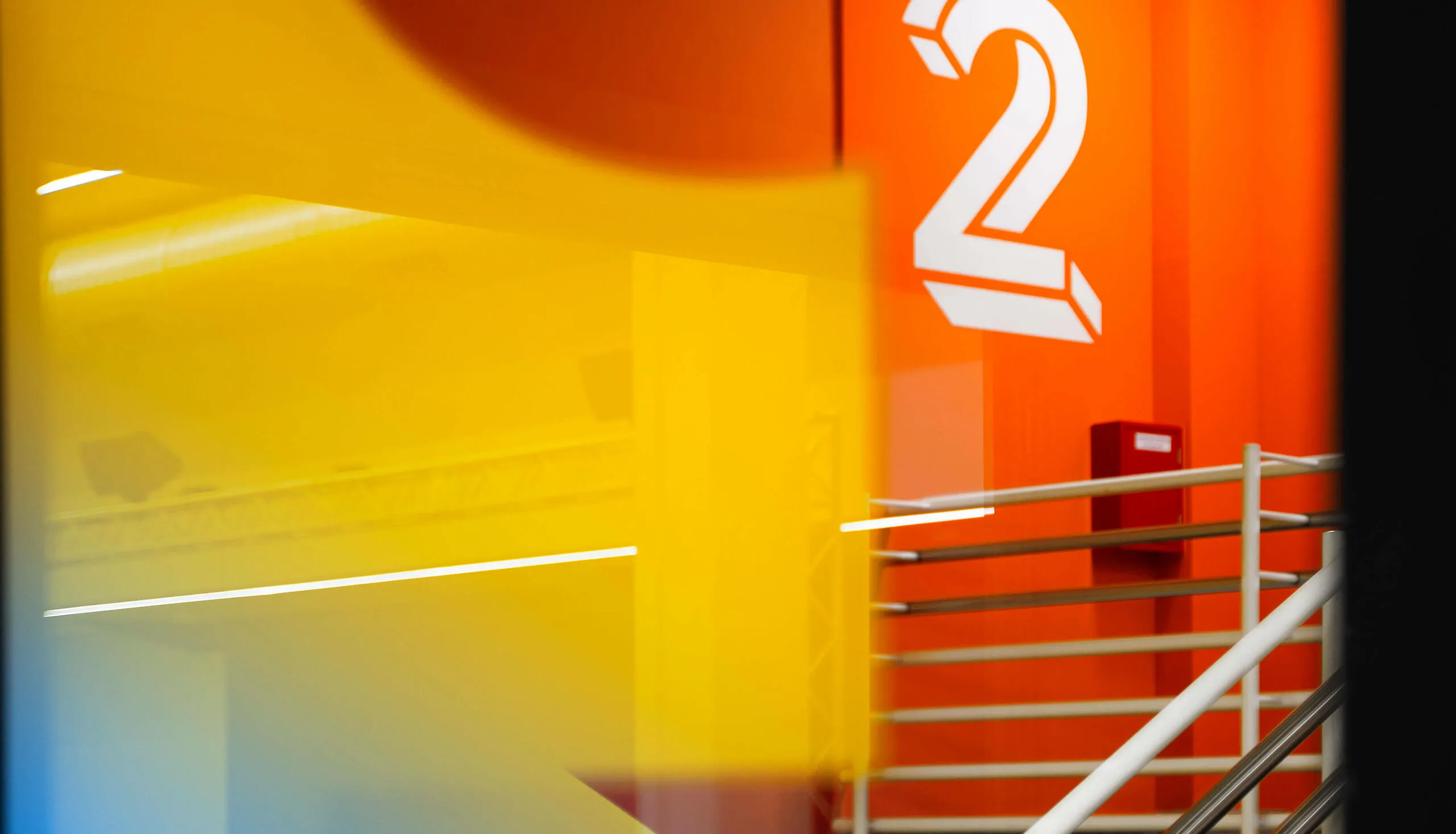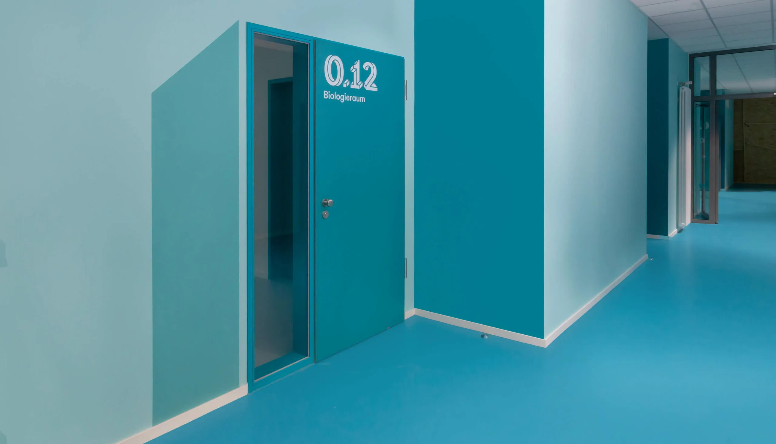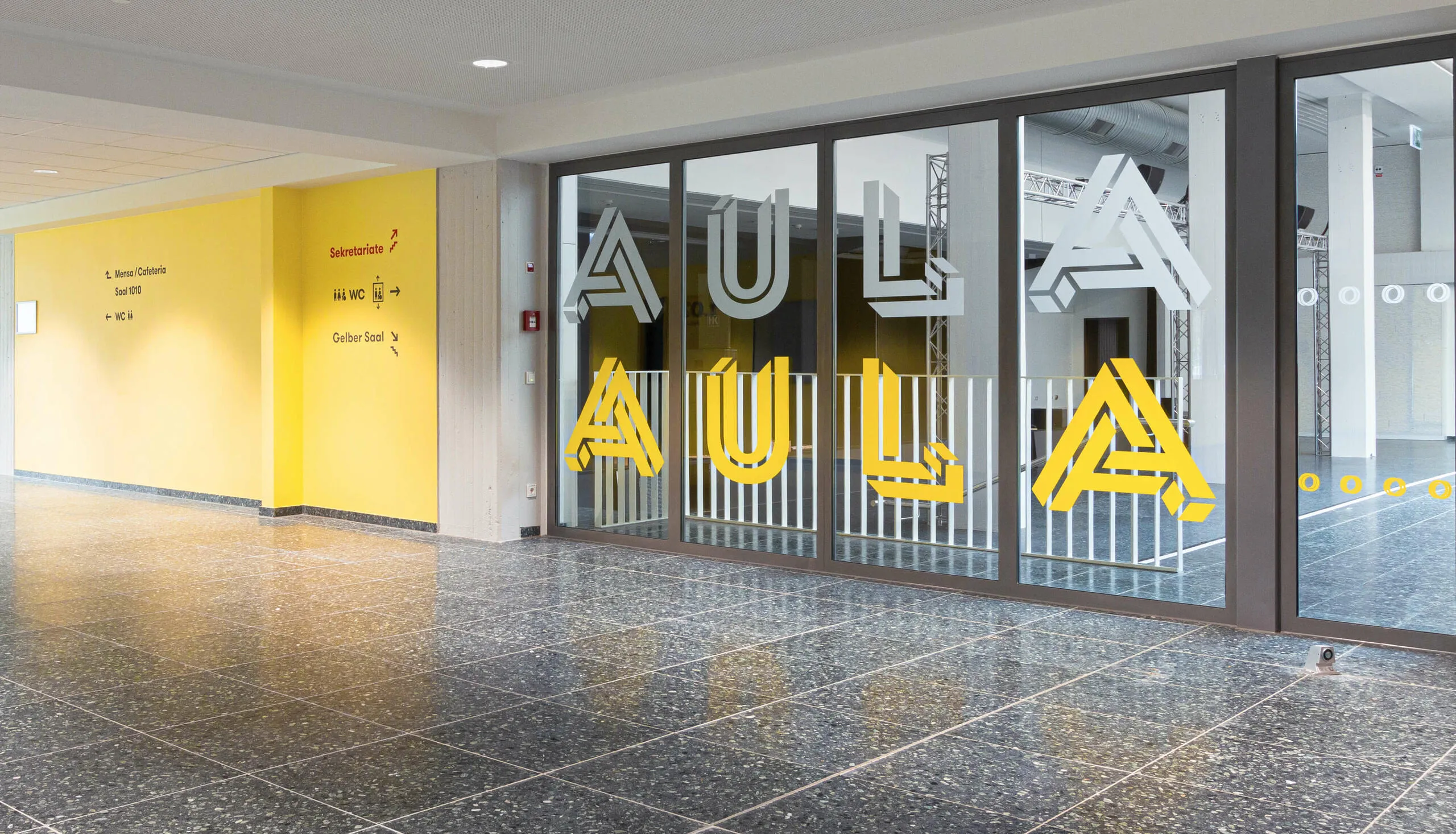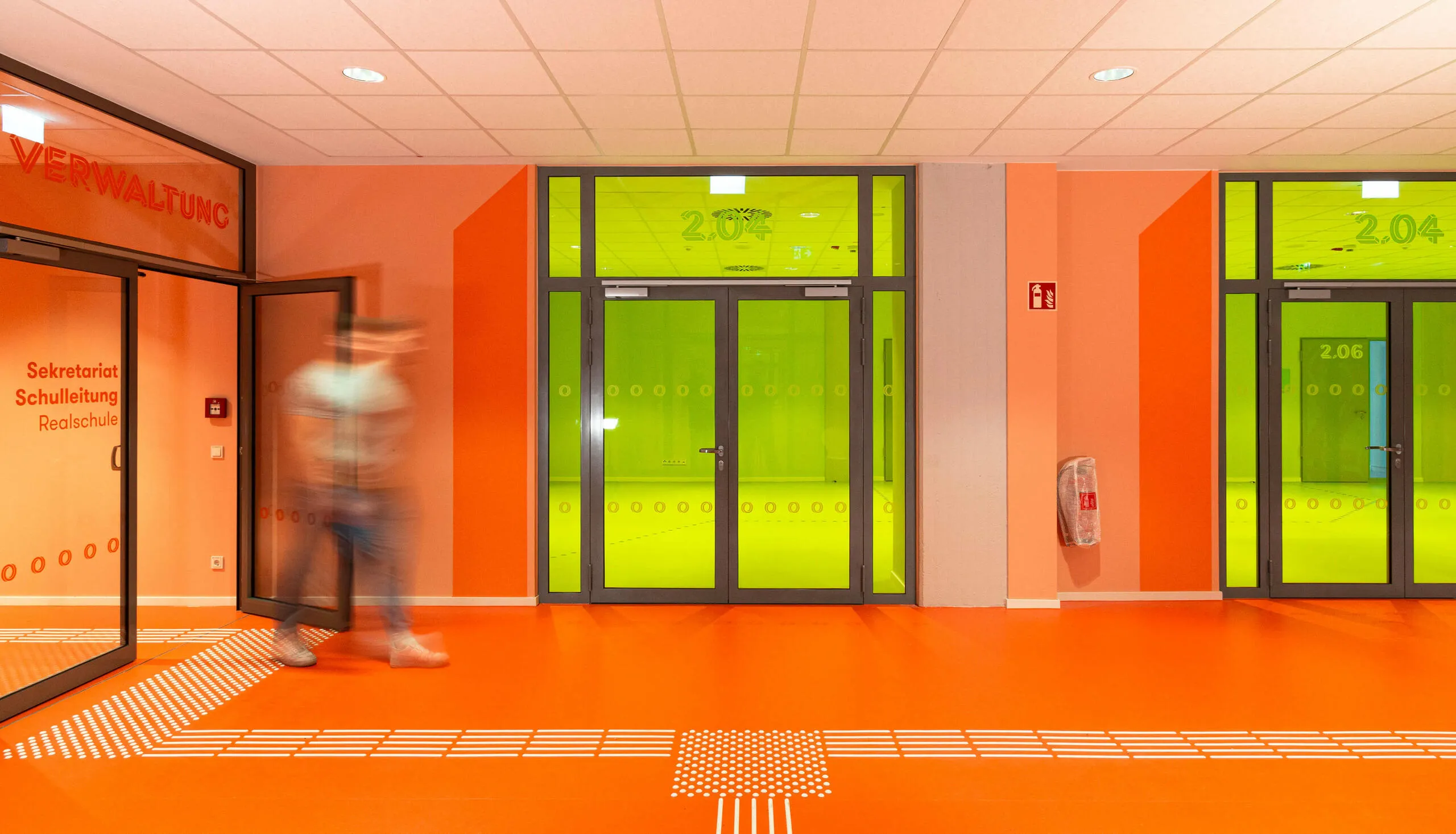 This individual and identity-creating wayfinding and orientation system was developed by us in close and early coordination with the user, client and architect. Striking typography and clear color coding solve the challenge of split-level architecture.