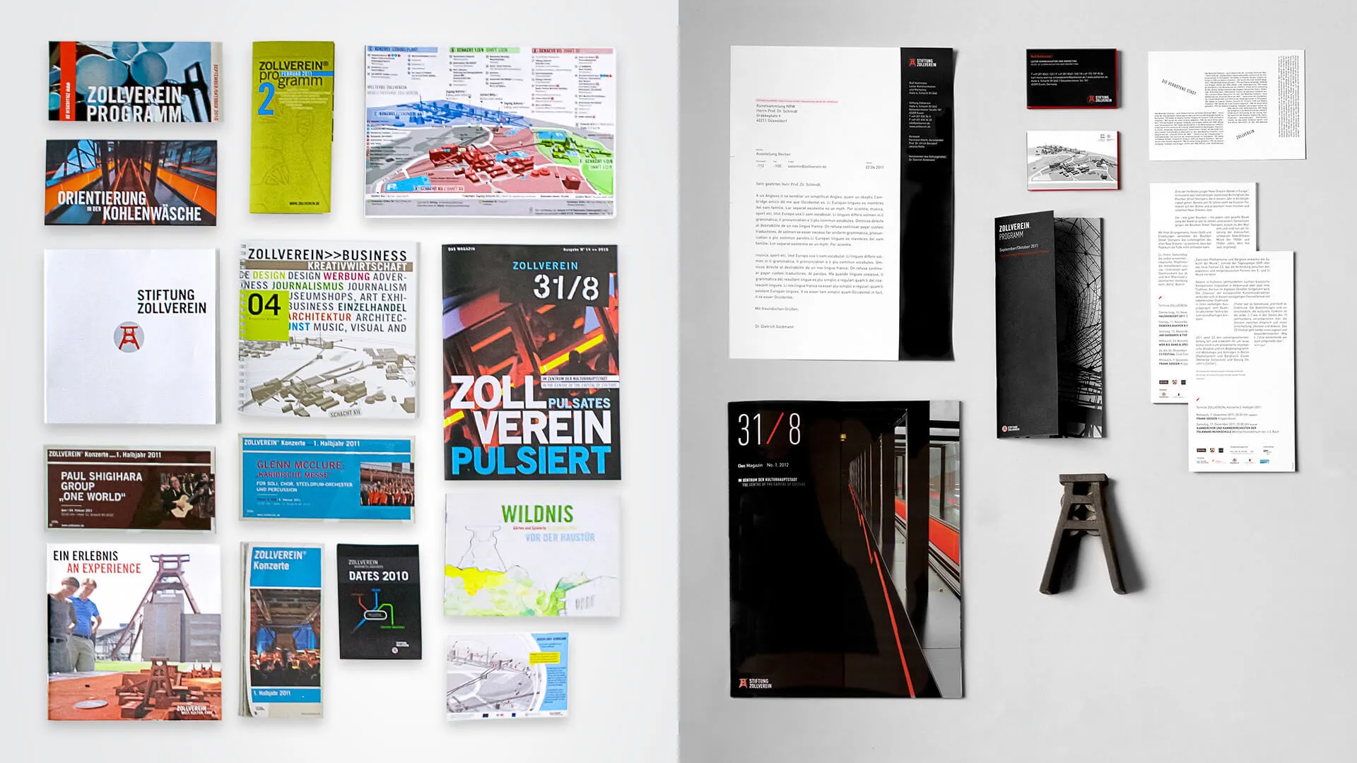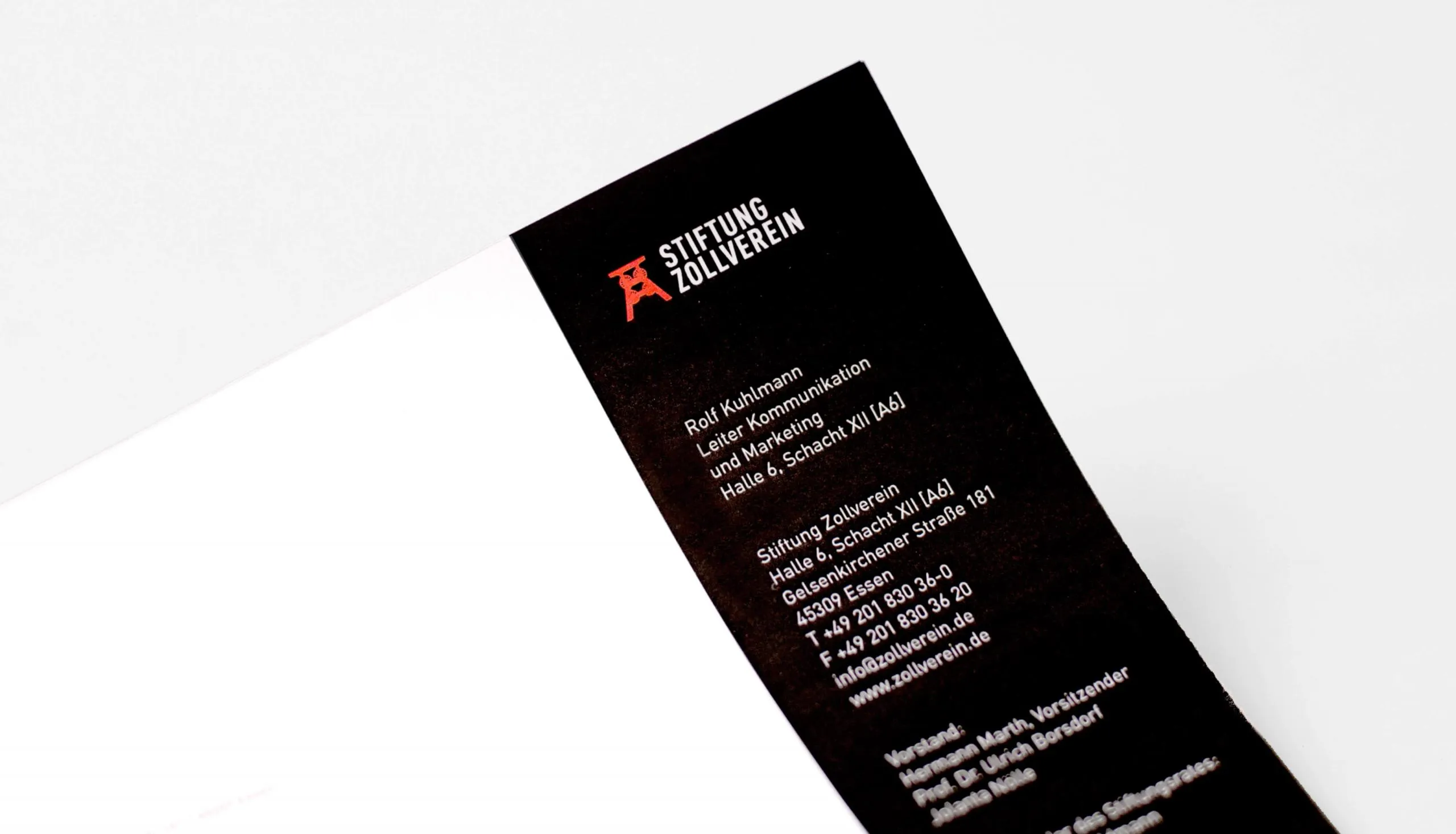 For a uniform external appearance that does justice to a world heritage site, both the business equipment and the media for external communication (event posters, program booklets, etc.) had to be presented in a uniform design concept. The aim was to present the foundation, the Ruhr Museum and the orientation system on the site with a homogeneous appearance.